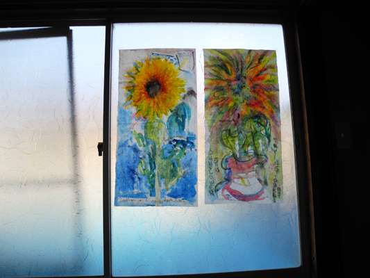 Washi with watercolour works very well as stained glass substitute, if taped against a window!